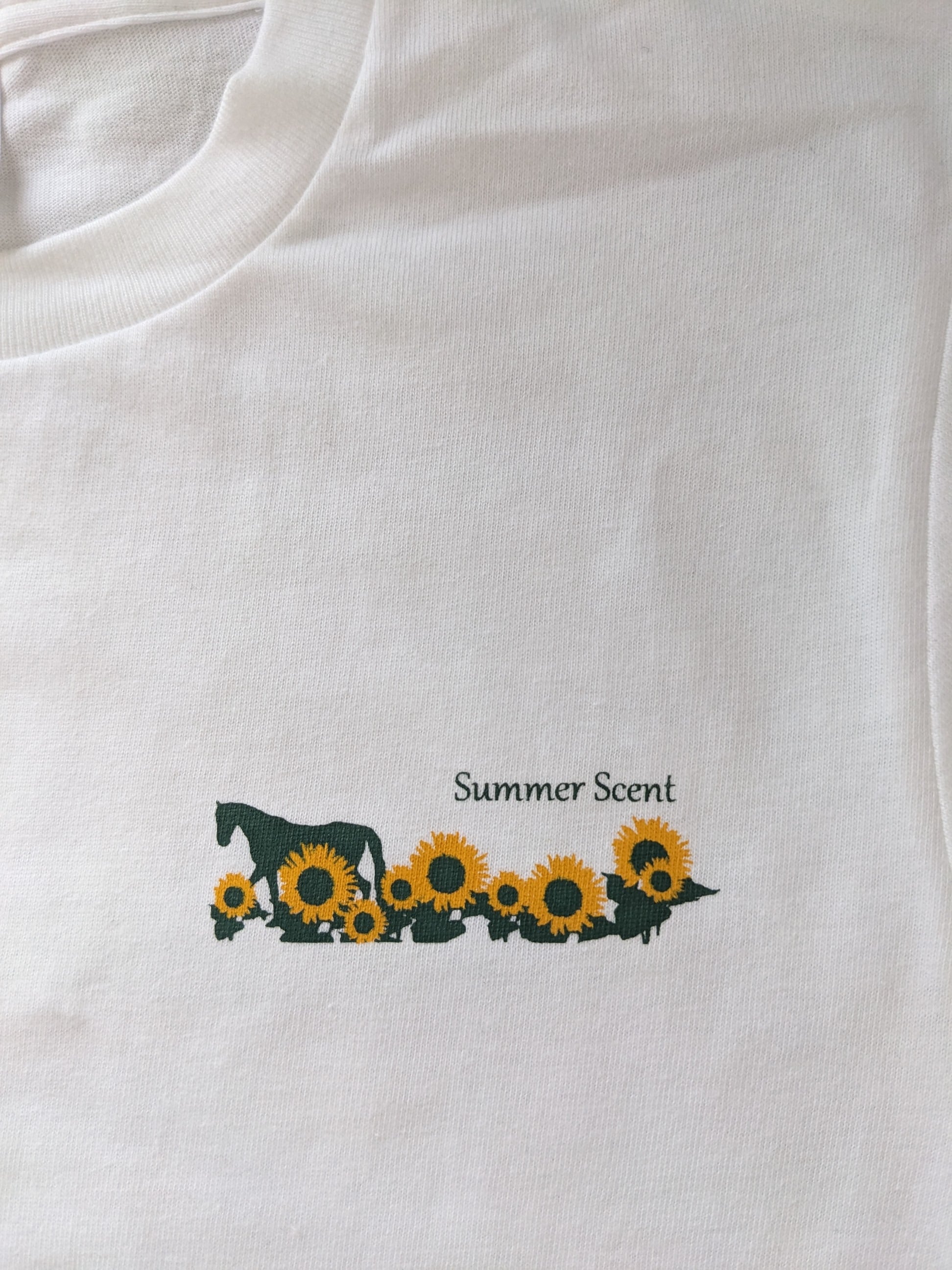 馬とひまわりの綿Tシャツです。